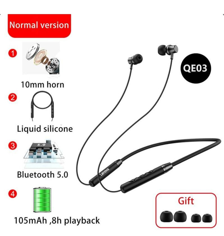 کمپانیی Lenovo یکی از معتبر ترین و خوش نام ترین کمپانی های فعال در زمینه لوازم برقی و تکنولوژی می باشد که بسیاری از محصولات آن در کشور ما به فروش می رسد. هندزفری بلوتوث HE05x محصولی از این کمپانی بوده و به صورت دور گردنی و ورزشی طراحی شده است. دو سری این محصول به وسیله یک تل سیلیکونی به هم متصل شده اند و این امر باعث شده تا به راحتی بر روی گردن شما بماند. تل این محصول به گونه ای طراحی شده که به کاربر این امکان را می دهد تا بتواند به راحتی آن را به هر حالتی که می خواهد در بیاورد. سری های هندزفری Lenovo HE05x به صورت تو گوشی طراحی شده اند و زاویه ای 45 درجه دارند و دارای سری های سیلیکونی می باشند تا به راحتی داخل گوش قرار بگیرد و دقیقاً بر اساس ارگونومی گوش طراحی شده تا کاربر در راحت ترین حالت ممکن به گوش دادن موسیقی بپردازد. همان طور که اشاره شد، سری های این محصول دارای زاویه ای 45 درجه بوده که باعث شده تا هندزفری بدون هیچگونه مزاحمتی داخل گوش کاربر قرار گیرد و هرگز از گوش آن جدا نشود. بر روی بدنه هندزفری HE05x یک قسمت کنترل قرار دارد که شامل 3 کلید فیزیکی بوده و وظیفه آن ها تغییرات موسیقی و ولوم، مدیریت تماس ها و پخش و قطع آهنگ می باشد و این امر بدون نیاز به منبع پخش (برای مثال: خود گوشی) انجام می پذیرد. یکی از نقاطی که می توان دقت کمپانی لنوو را در آن مشاهده کرد دو سری تل این محصول می باشد ، زیرا بر روی هر دو سر یک قسمت ضخیم تر قرار داده تا تعادل این محصول حفظ شود و فرم قرینه هندزفری کمک می کند تا بتوانید بدون جابجا شدن و متمایل شدن هندزفری به یک سو، از آن استفاده نمایید. یکی از دغدغه های امروز دزدیده شدن گوشی همراه به هنگام مکالمه است که با استفاده از این محصول می توانید با خیال راحت مکالمه ای لذت بخش داشته باشید، در حالی که گوشی درون جیب شما است. در طراحی این هندزفری از یک میکروفون HD استفاده شده که باعث شده کاربر تجربه یک مکالمه شفاف و بدون نویز را تجربه کند. هندزفری بلوتوث Lenovo HE05x Hanging دارای یک باتری داخلی بوده که در مدت زمان 2 ساعت به شارژ کامل خود رسیده و بعد از آن قادر است به مدت زمان 8 ساعت برای موسیقی و مکالمه به همراه شما باشد و البته این نکته قابل ذکر است که این مدت زمان برای زمانیست که با ولوم 50 درصد به گوش دادن موسیقی بپردازید.