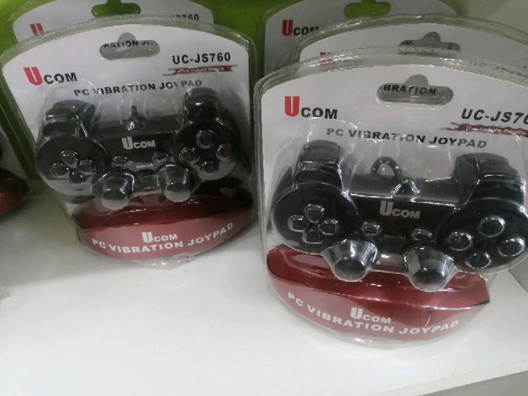دسته بازی کامپیوتر دوبل شوک دار UCOM مدل UC-JS760 یک گیم پد با ساختار ارگونومیک و مهندسی شده که در زمان استفاده طولانی از خستگی دست جلوگیری کرده و کمترین آسیب های احتمالی را به دست و انگشتانتان وارد میکند. از ویژگی های این گیم پد وجود شوک بسیار قوی برای حس هیجان بیشتر در بازی های اکشن و جنگی با 10 کلید اصلی و یک کلید ANALOG که شما براساس نیاز خود میتوانید دسته را به دو حالت دیجیتال یا دستی تغییر دهید. از دیگر کلید های این گیم پد دوبل ساده 4 دکمه کمکی در شانه های طرفین کار گزاری شده است.این دسته سازگار با انواع سیستم عامل هایی چون Win9x/2000/XPو… میباشد.