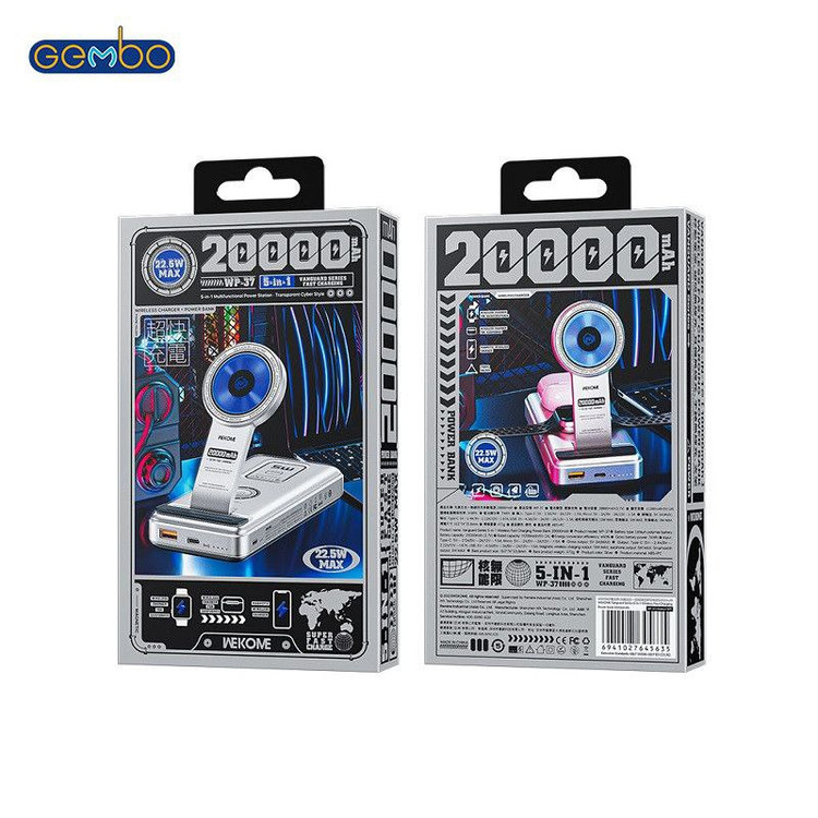 پاوربانک سه کاره وایرلس ویکام 20000 میلی آمپر مدل WP-37