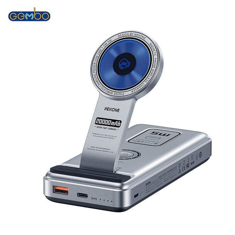 پاوربانک ویکام سه کاره وایرلس شارژ با ظرفیت 20000 میلی آمپر و قابلیت شارژ همزمان چند دستگاه با همدیگه را دارد
