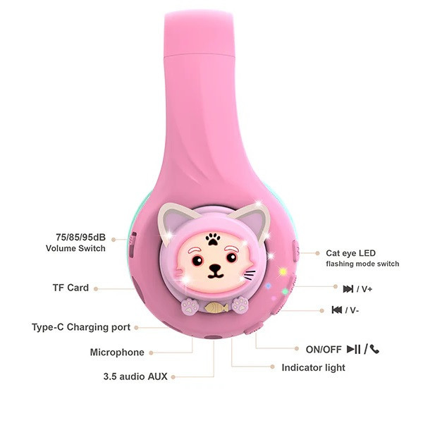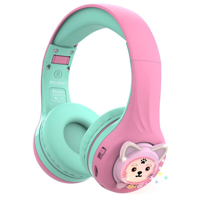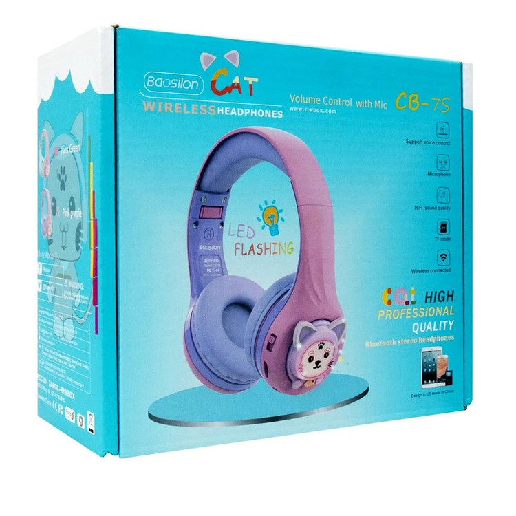 هدفون بلوتوث فانتزی Baosilon مدل CB-7S با طراحی بسیار جذاب گربه ای از جنس سیلیکونی که از طریق بلوتوث و کابل AUX به گوشی یا تبلت شما متصل می شود و با وجود باطری داخلی قابل شارژ میتوان ساعت ها به مکالمه پرداخت یا به موسیقی گوش داد. این هدفون دارای عملکرد تنظیم صدای سه مرحله ای است و محدودیت صدا را می توان به راحتی از طریق دکمه جابجایی کناری تغییر داد. این امکان می تواند از شنوایی کودکان بهتر محافظت کرده و شرایطی فراهم آورد تا بچه ها بتوانند با خیال راحت از آن در ماشین، هواپیما، مدرسه و خانه استفاده کنند. همچنین برای این هدفون چهار حالت چشمک زن نور ال ای دی در نظر گرفته شده است که با فشردن دکمه M تغییر می کند.همچنین می توانید هنگام استفاده از هدست در حالت بلوتوث، برای صرفه جویی در مصرف انرژی برای زمان پخش موسیقی طولانی تر، چراغ LED چشمک زن را خاموش کنید. این هدست وایرلس با ساختاری متفاوت و خاص با دسته های تاشو و سیلیکونی و طراحی رقص نور بر روی چشم های گربه و دو بالشتک بسیار نرم ، یک هدیه عالی برای کودکان به شمار میرود. اقلام همراه این هدست، کابل تایپ سی جهت شارژ و یک کابل AUX و یک دفترچه راهنما می باشد.
