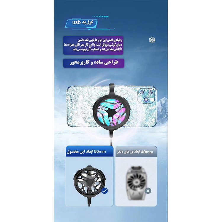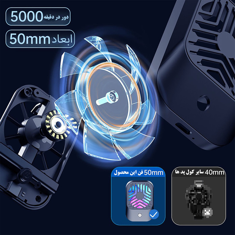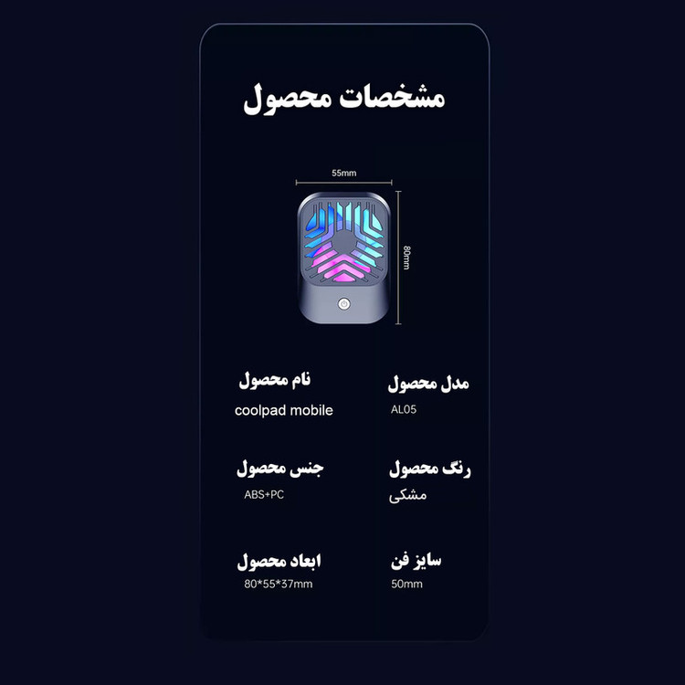 فن خنک کننده رادیاتوری گوشی موبایل مدل AL-5 از سازگاری بسیار بالایی با انواع گوشی های هوشمند تلفن همراه شامل گوشی های اندرویدی و iOS برخوردار است. قدرت خنک کنندگی در این فن رادیاتوری فقط وابسته به فن آن نبوده و برای خنک کردن گوشی از جدیدتری تکنولوژی استفاده می شود که از که به تنهایی از توان بالایی برخوردار است. علاوه بر این قسمت چند لایه آلیاژ آلومینیوم در این فن رادیاتوری موجود می باشد که بر قدرت این محصول تا حد زیادی افزوده است. این محصول دارای 3 حالت سرعت می باشد و با سرعت چرخش مناسب هوای گرم را در سریع ترین زمان از گوشی می گیرد. در قسمت فن این محصول از نور پردازی با نور های RGB استفاده شده که در هنگام بازی هیجان بسیار زیادی ایجاد می کند. فن خنک کننده رادیاتوری گوشی موبایل مدل AL-5 با داشتن گیره به سادگی و سرعت خیلی بالا بر روی هر نوع گوشی هوشمند نصب می شود. این محصول دارای باتری می باشد و با شارژ کردن آن ساعت ها امکان بازی به صورت بی سیم را امکان پذیر می باشد.