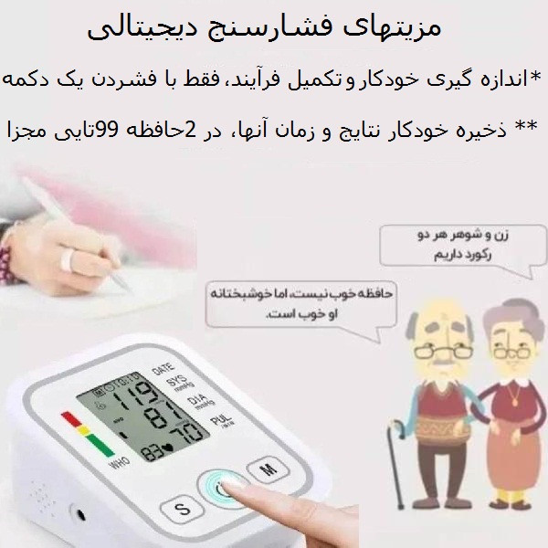 قابلیت خاموشی خودکار , نمایش وضعیت باتری , نمایش میانگین نتایج , نمایش تاریخ , حافظه ذخیره نتایج , سنجش ضربان قلب