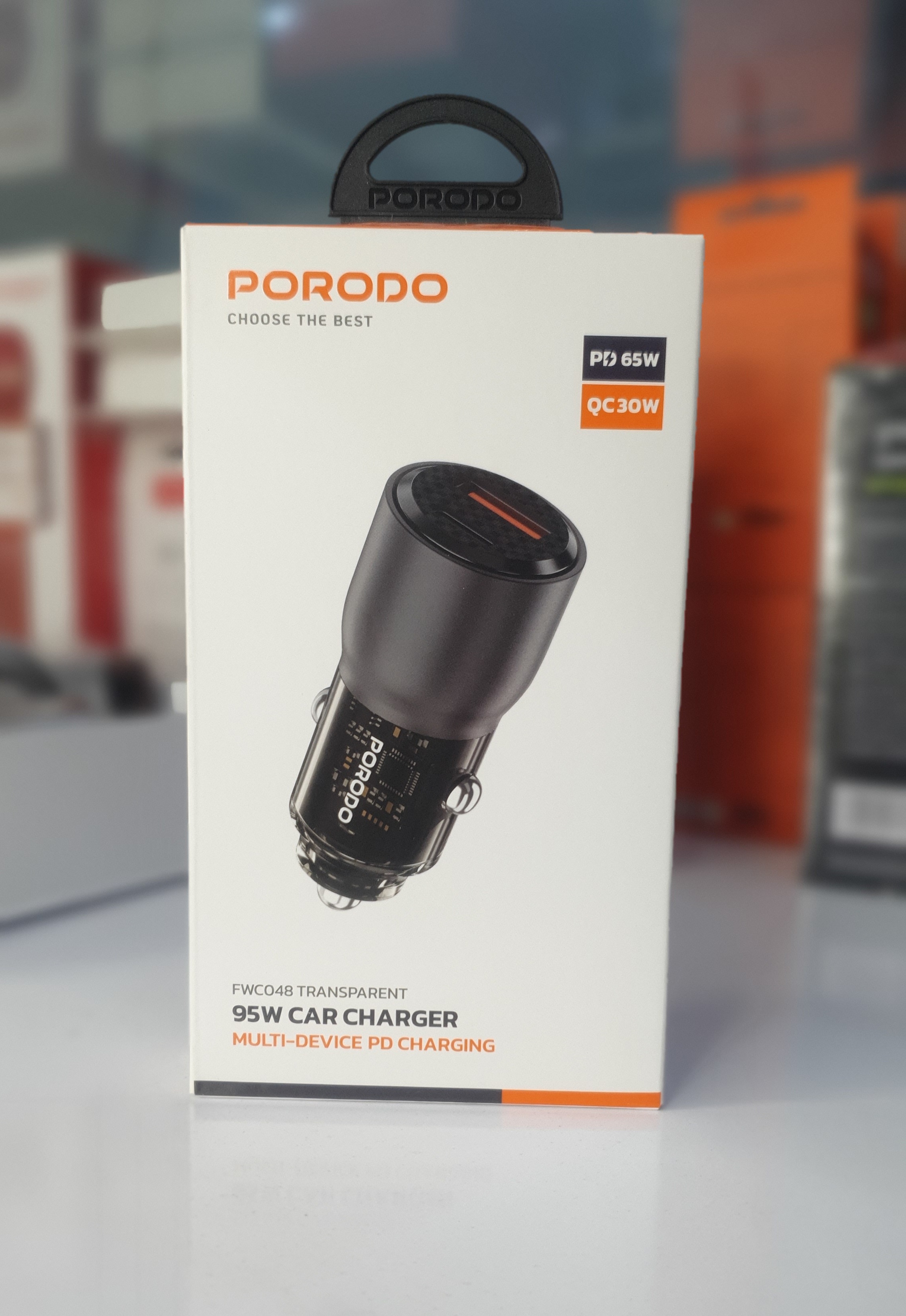 شارژر فندکی پرودو مدل FWC048 شفاف – توان 95 وات با پشتیبانی PD و QC